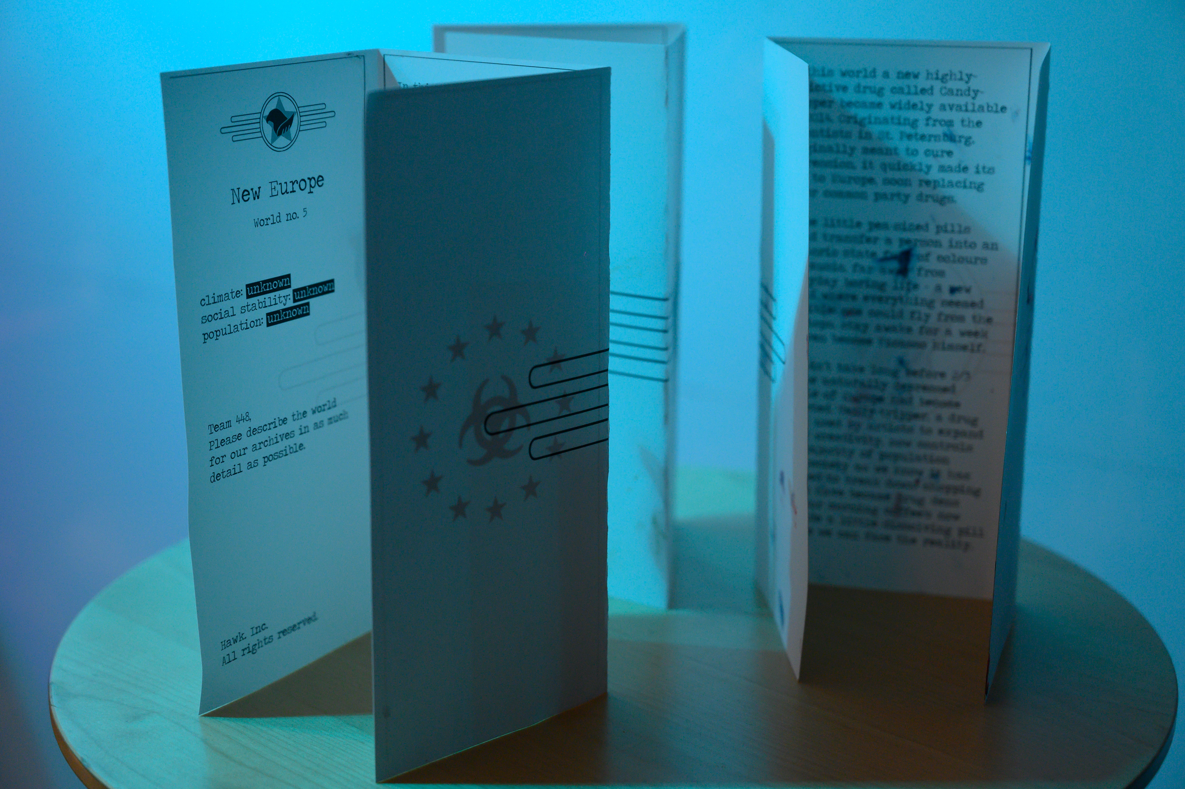 The workshop participants were then asked to take the role of a wormhole-jumping scientist from an international corporation Hawk. Inc., specialized in mapping out parallel worlds and describing them to the imaginary archives. The roleplay helped the participants to better answer the questions like why? – instead of just describing the imaginary environment they were supposedly in, the participants were also forced to think why something would be the way they see it.
